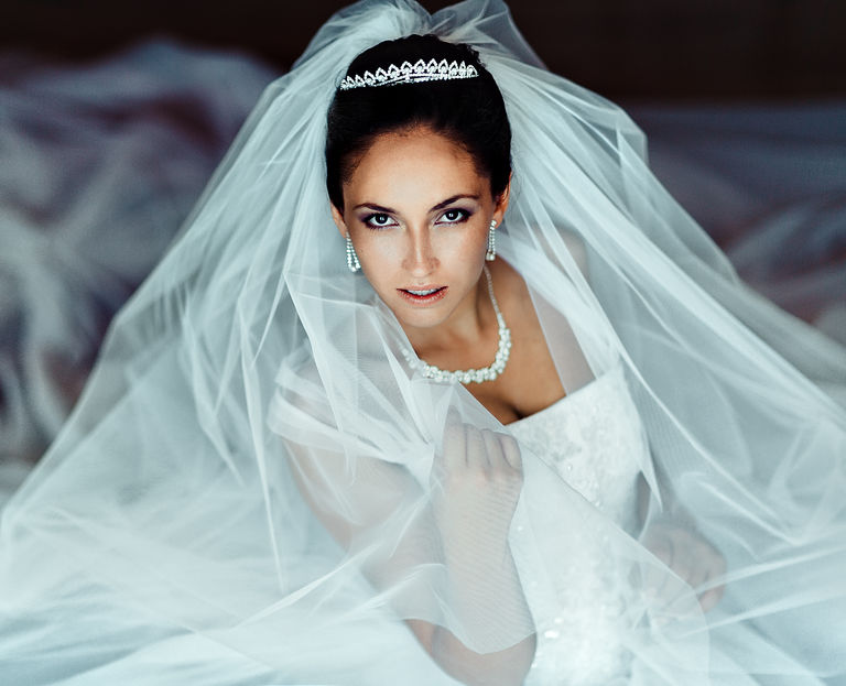 We carry handcrafted custom veils with elegant cathedral lengths, simple edges and detachable layers.
